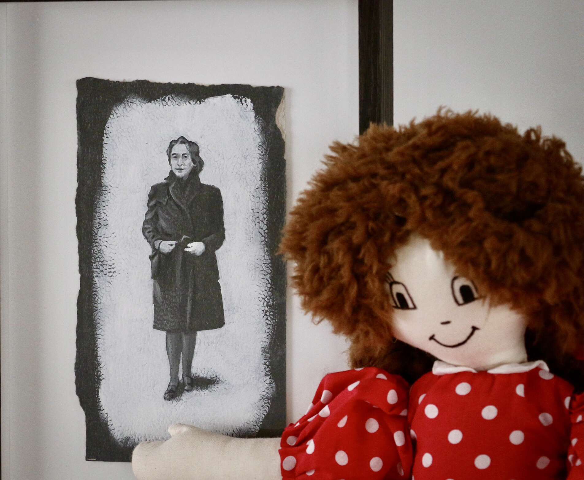 Ann de Bode maakte de prachtige illustraties. Het zijn allemaal schilderijtjes in acrylverf, op het karton van zwart-wit ‘gewolkte’ dossiers. Geen enkel beeld is in kleur, en dat was een bewuste keuze van de kunstenares. Kleur vond ze te hoopvol, te vrolijk voor dit verhaal. Ze heeft nog even getwijfeld om de pop op de achterflap toch in kleur (rood) te brengen, maar dat idee werd snel opzijgeschoven. Gelijk heeft ze: door vast te houden aan zwart-wit klopt het geheel. Wat niet wil zeggen dat dit een donker en kleurloos boek is. De tinten van liefde en hoop zie je er als vanzelf bij. Bijzonder is ook dat in sommige illustraties bewust veel werd weggelaten. Het geeft kinderen de kans om zelf de invulling te doen, en zet hen aan tot nadenken.